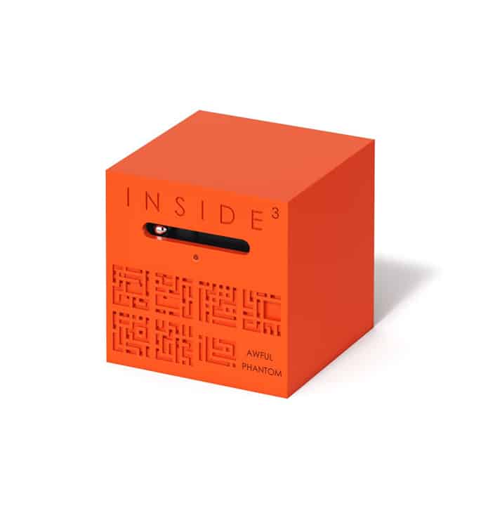 Deze kubus bevat een tweede knikker (le phantom). Geen gemakkelijke kubus hier. Als je nog niet bekend bent met de INSIDE puzzels, begin dan eerst met het noVICE-assortiment of de 0-serie. ‘The Mean’ & ‘the Awful’ zijn moeilijk, maar ze kunnen wel worden geopend. Het is een pure nachtmerrie. Het zit vol met doodlopende wegen en technische passages. Met 7 trays labyrinten om over te steken, bevatten ze daarentegen een tweede knikker, levend ommuurd in een vergeten kamer van het labyrint… Dit spook spookt rond in de kubus en maakt het leven van de speler erg moeilijk.