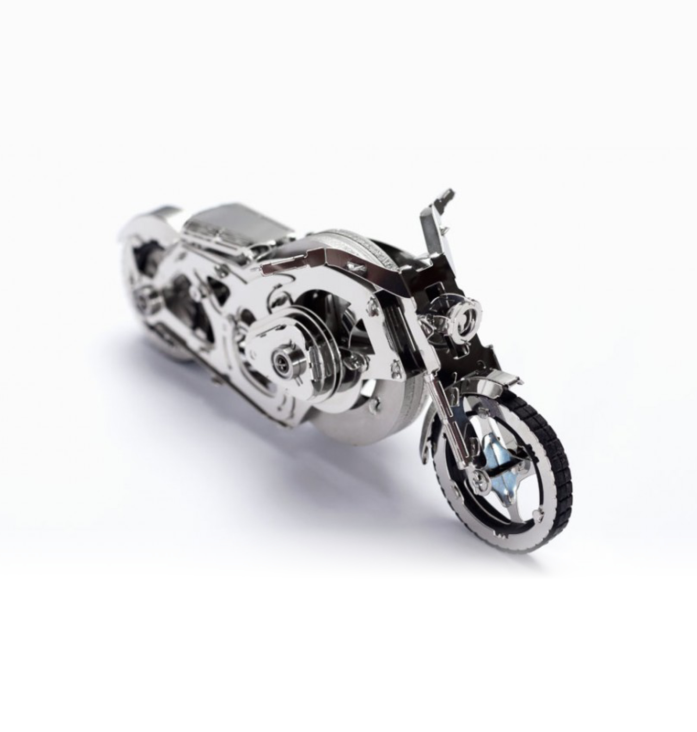 Manchmal möchte man alles aufgeben, was man je gekannt hat, und durch den Regen und die Neonlichter davonlaufen. Leder und Metall. Wilde Reiter der Nacht auf ihren stählernen Rössern. Eine raubtierhafte Schönheit bricht durch die röhrenden Motoren und Heavy-Metal-Akkorde. Du fährst durch den Sturm, jagst dem Wind hinterher, vorbei an Bars, Motels und Melancholie auf der Straße. Ein Blick auf dieses Modell, eine Berührung – mehr braucht es nicht, um sich in unseren Chrome Rider zu verlieben, so wie wir es getan haben. Inspiriert von der brutalen Romantik der Harley-Davidson-Modelle, ist Chrome Rider Ihr Leitfaden für das Ende der Nacht.