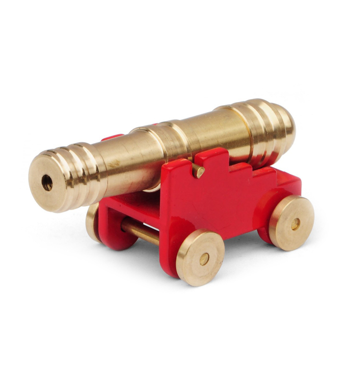 Find out how to free the cannonball from the copper cannon. Very difficult alloy puzzle of Cast Puzzle type: the solution requires several successive steps to be solved. The puzzle consists of removing the cannonball from the copper cannon. A very difficult progressive displacement puzzle.