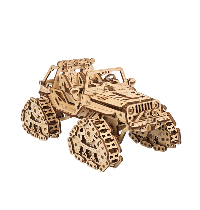 Thethey tough Ugears Tracked Terrain Truck is a sensitive vehicle with a soothing ride. One look at the dashing tracks of this wooden vehicle model will invoke your “Must have!” instinct. This 1:24 scale model features a pulley engine that allows it to travel more than three meters in “(D)rive” mode and more than four meters in “(S)port” mode, an open cab, four-wheel drive, an engine hood that can flip open to view the mechanicals, and a rear safety bar. The most notable feature, however, is the four tracks that replace the wheels. Conversion systems for rubber tracks, such as Mattracks, Rubtrack and those from other manufacturers, can be bolted to the rims of ORVs, tractors and rescue vehicles, allowing the vehicle to operate even in the most difficult conditions and on all terrains. You will never be stuck in mud or snow again – with tracks like these you will get through, without any effort. To drive the 3-dimensional puzzle of tracked vehicles, give up to 26 half strokes of the ratchet mechanism on the model’s undercarriage. The shifter acts like an “On/Off” switch, so set it to the “(P)arkeer” position before running it, place the ORV on a surface, hold it firmly while sliding the shifter to the “D” position or raise the shifter slightly and return to “S” mode, then release the model. A pendulum at the rear causes the vehicle to slow down in drive mode. If you think those fancy tracks can’t give your car the best ride, you should try again! Try out your Ugears ORV on tracks with a few trial runs over tough terrain or snow, or lay down some barriers to test its resilience. We believe the Ugears Tracked Terrain Car is a power patcher.