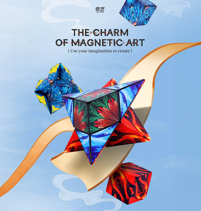Discover the magic of the QiYi 3D Magnetic Shape Shifting Cube Peacock, a powerful creative folding cube for both young and old. Let your imagination run wild and create a variety of captivating and colorful shapes! With the QiYi 3D Magnetic Shape Shifting Cube, you can create different combinations to unlock unlimited possibilities. Combine two or more QiYi 3D Magnetic Shape Shifting Cubes for unique shapes and textures. The cube offers an engaging and lively introduction to geometric space. It is more than simply a puzzle; it challenges both beginners and experienced puzzlers to improve their spatial understanding and logical thinking.