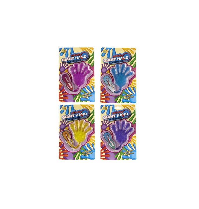 Laat je handen plakken met de Sticky Giant Hand! Deze grote, glinsterende hand is perfect voor eindeloos fun en plezier. Trek de hand uit en laat hem zich vastzuigen aan oppervlakken, of gebruik hem om verrassende effecten te creëren! Verkrijgbaar in vier schitterende kleuren, maar welke je krijgt blijft een verrassing. Een geweldige, speelse gadget voor jong en oud!