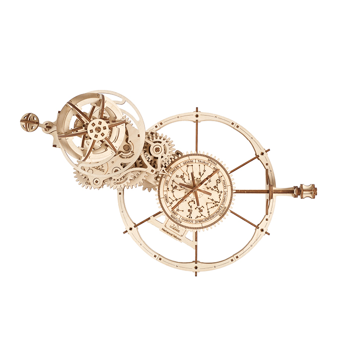Het idee van een model met een ruimtethema “zweeft al een tijdje in de ruimte” bij Ugears. Iedere keer dat we een nieuw model aankondigen, vragen hoopvolle Ugears-fans: “Is het een planetarium?” Vanuit deze gedeelde wens is een project geboren. Onze missie: kennis van ruimte en tijd verspreiden door mensen te helpen de bewegingen van de planeet waarop we leven en de dichtstbijzijnde satelliet, de maan, zichtbaar te maken.