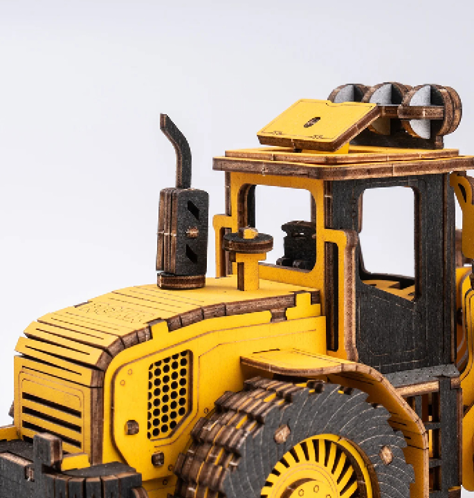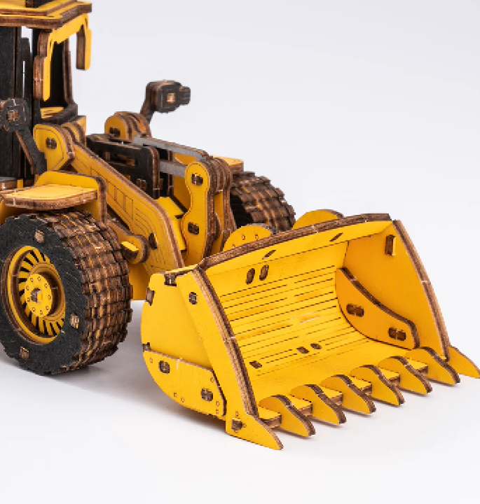 Dit bulldozermodel is ontworpen op basis van echte bulldozers. Het is een perfect educatief houten 3D-puzzelspeelgoed voor liefhebbers van voertuigen en monteurs. Zie je hem al bij jou op de kast of in je vitrine staan, deze gave shovel? Hij is ge-wel-dig gedetailleerd met bijvoorbeeld zijn drie verstralers op de cabine om ’s nachts door te kunnen werken. Achter op de gebogen motorkap staat zijn uitlaatpijp en natuurlijk ontbreekt het laddertje voor de chauffeur niet. Het stoerst is nog wel de graafbak van deze gele bulldozer. Je kunt hem echt bewegen! Dit houten bouwpakket volwassenen is ook erg leuk als knutselpakket voor een kind of maak het samen!