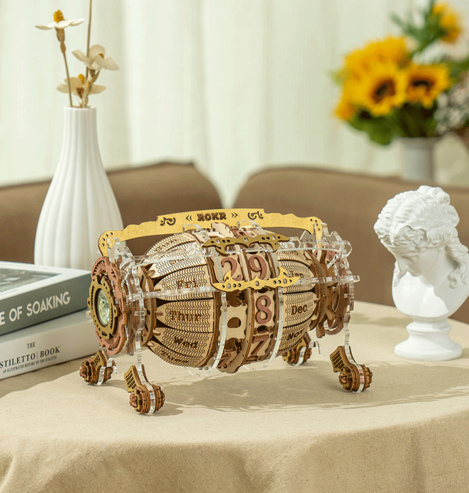 De Robotime LC801 Time Engine Calendar is gemaakt door Miko, een beroemde Europese ontwerper, om de schoonheid van de combinatie van machines en tijd te creëren. Maak van onzichtbare dingen tastbare kunstwerken die voor je neus kunnen worden uitgezonden. Zolang u op de overeenkomstige mechanische structuur drukt, zal het product u de exacte tijd en datum vertellen. Het zijn klokken en kalenders die in het echt kunnen worden gebruikt.