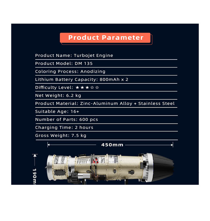Bewonder de mechanica van een militaire turbofan met de Teching DM135, een volledig metalen modelkit in schaal 1/10 met meer dan 600 onderdelen. Gemaakt voor liefhebbers van techniek, STEM‑educatie en indrukwekkende displaystukken.