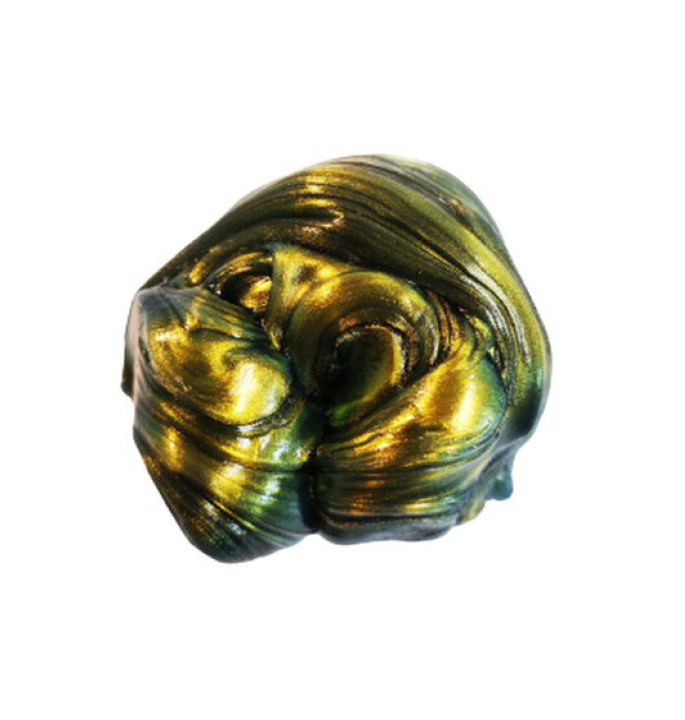 De naam zegt het al: Super Olievlek. Afhankelijk van hoe het licht op de Super Olievlek putty valt, glinstert de putty in verschillende kleurfacetten. Het kleurenspectrum varieert van groen tot goud en grijs tot zwart. Als je de putty breekt of scheurt, is het van binnen zwart, maar een lichte aanraking van de zwarte vlek is genoeg om de putty te doen glinsteren in talloze kleuren. De Intelligente putty rekt uit als een kauwgombal, stuitert als een bal en scheurt zo gemakkelijk als papier. Deze putty zit verpakt in een mooi metalen blikje.