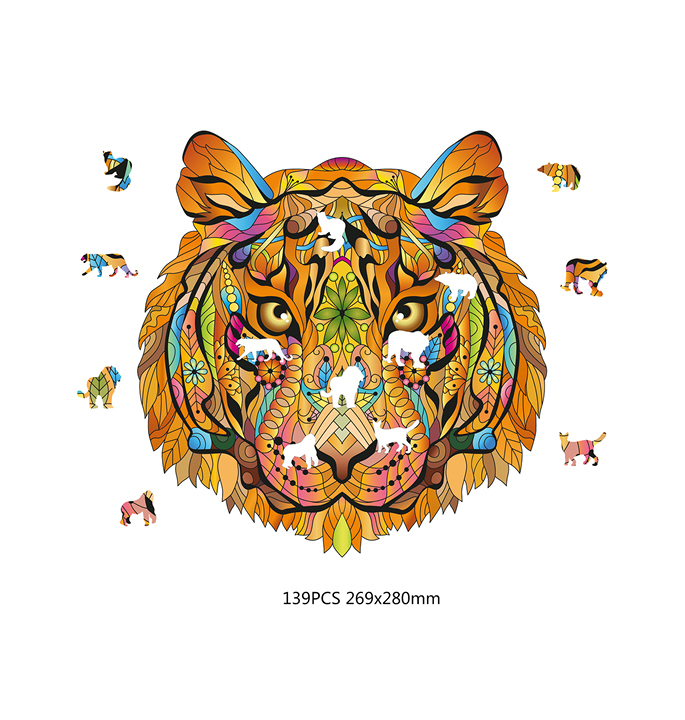 Heb jij deze Rainbow Wooden puzzels van Eureka al gezien!? Het zijn duurzame 2D houten puzzels! Alle puzzels zijn gemaakt in de vorm van een dier. Op deze puzzel is een tijger te zien in prachtige kleuren. De puzzelstukjes zijn allemaal bijzonder en hebben iets te maken met de puzzel. Deze dierenpuzzel bestaat uit 139 stukjes en de afmeting is 269 x 280 mm.