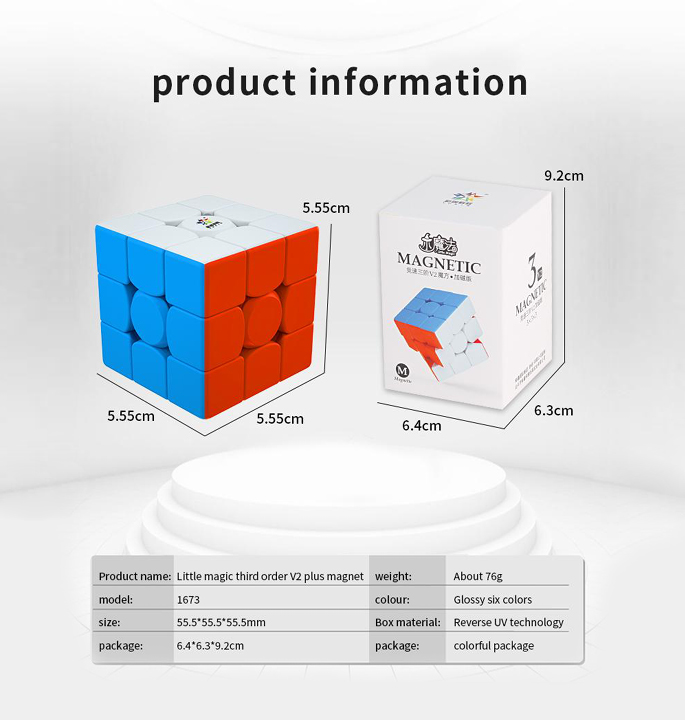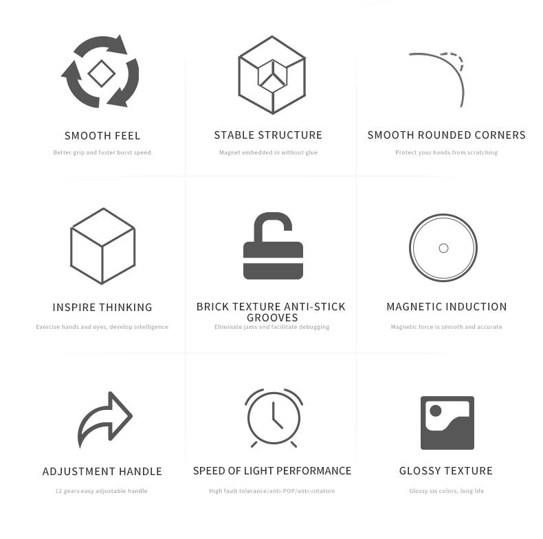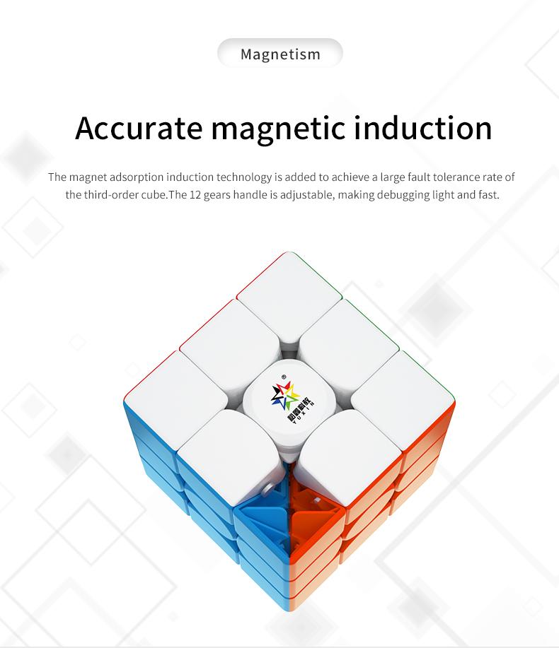 De YuXin Little Magic 3×3 V2 M is een update van de 3×3. Met een baksteentextuur ”brick texture” op de oppervlakken, een glanzende afwerking en middel sterke magneten.